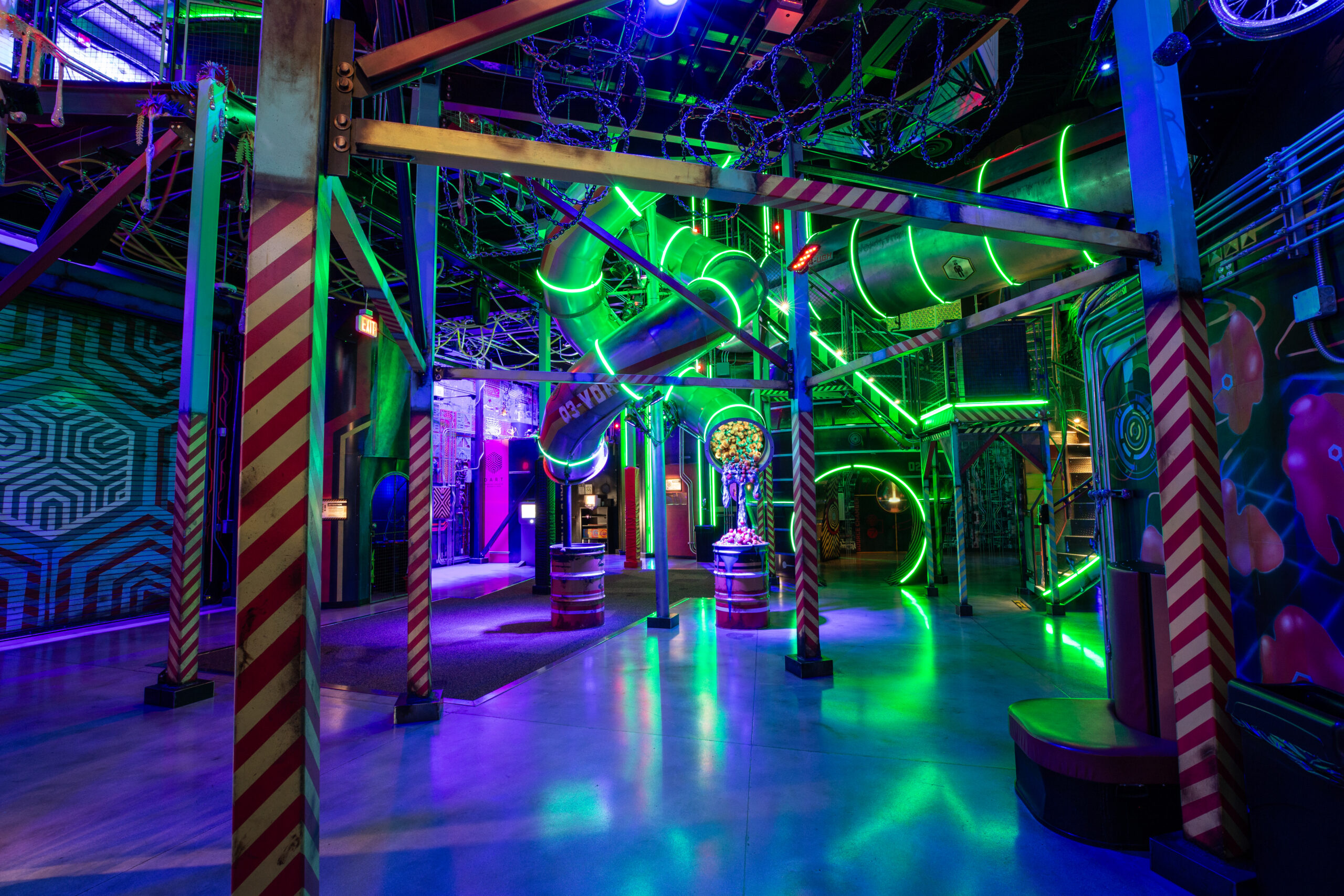 Visitors navigate hidden tunnels, glowing landscapes, and interactive exhibits, uncovering storylines tied to the fictional “Dramcorp,” Omega Mart’s mysterious parent company. With more than 52,000 square feet of interactive environments, it’s an evolving example of large-scale immersive storytelling—ideal for groups seeking unconventional engagement.