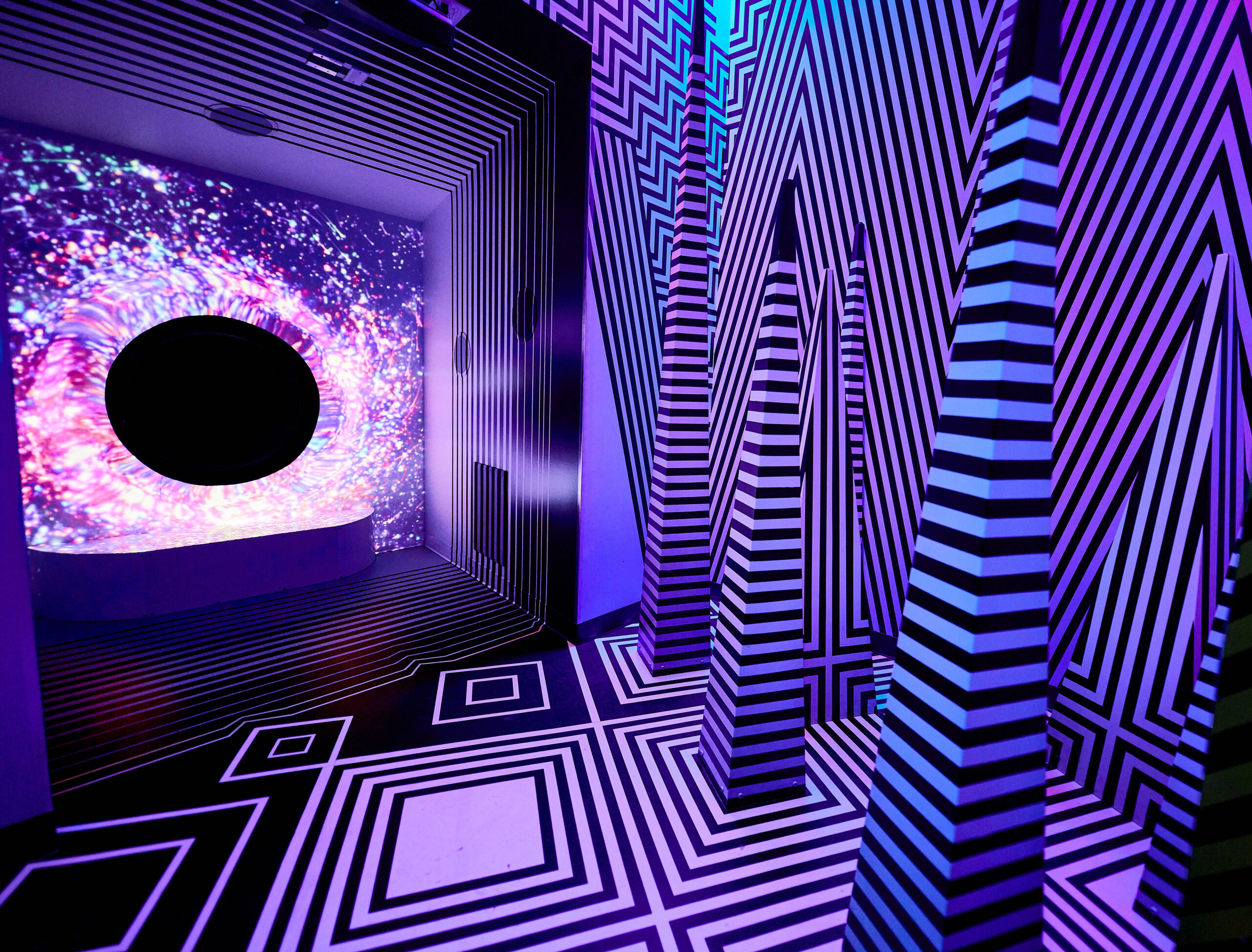 Developed by the Santa Fe-based arts collective Meow Wolf, Omega Mart opened in 2021 as part of AREA15’s experiential ecosystem. It presents itself as an ordinary supermarket—but behind freezer doors and pharmacy counters lie portals into vivid, otherworldly spaces. Every inch is designed to blur the line between gallery, playground, and narrative theater.