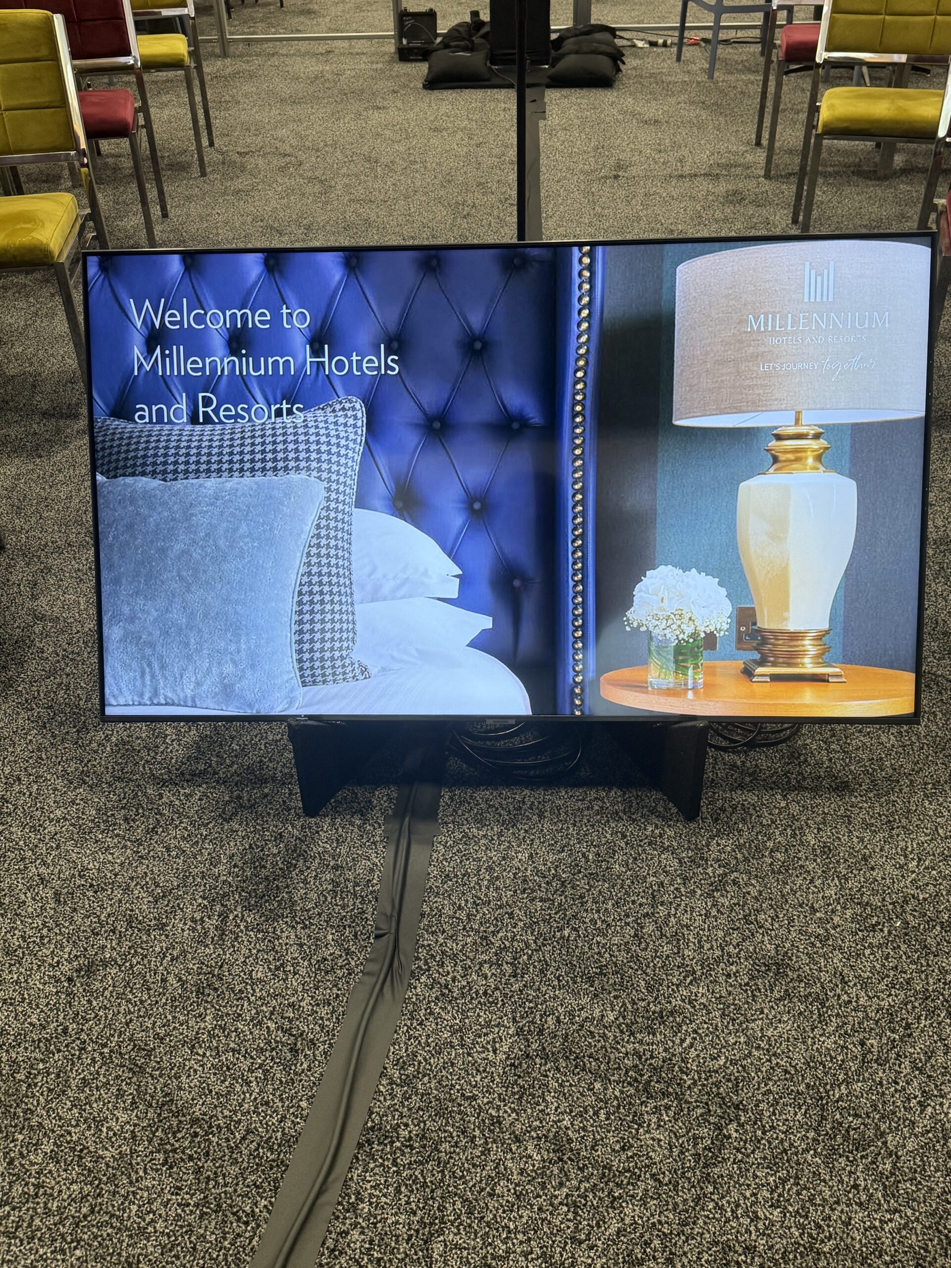Technology upgrades include next-generation meeting and event spaces: six rooms covering approximately 3,550 sq ft, equipped with 98-inch 4K screens, wireless casting, and integrated conferencing systems.